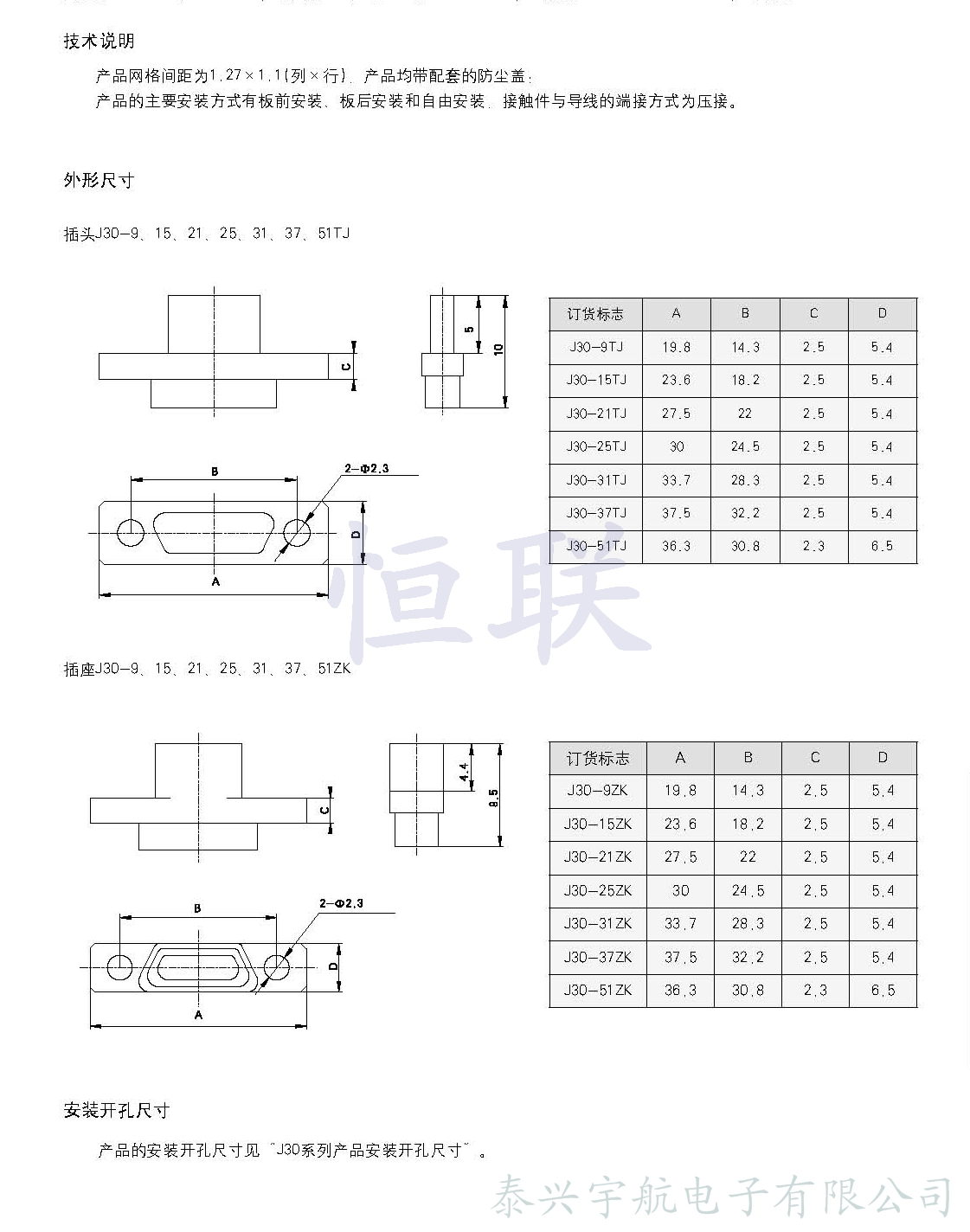 J30J壓接系列微矩形電連接器可按用戶的要求進行導線的布排,尾端可壓接線芯截面積為0.07~0.15mm2,在此范圍內(nèi)可使用不同顏色的導線、屏蔽線或其他種類適當規(guī)格的的導線。