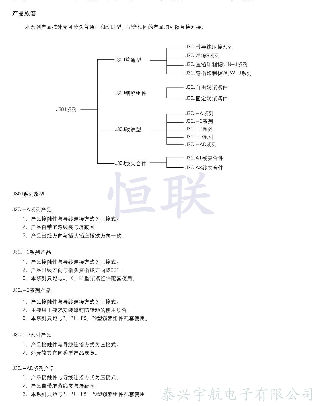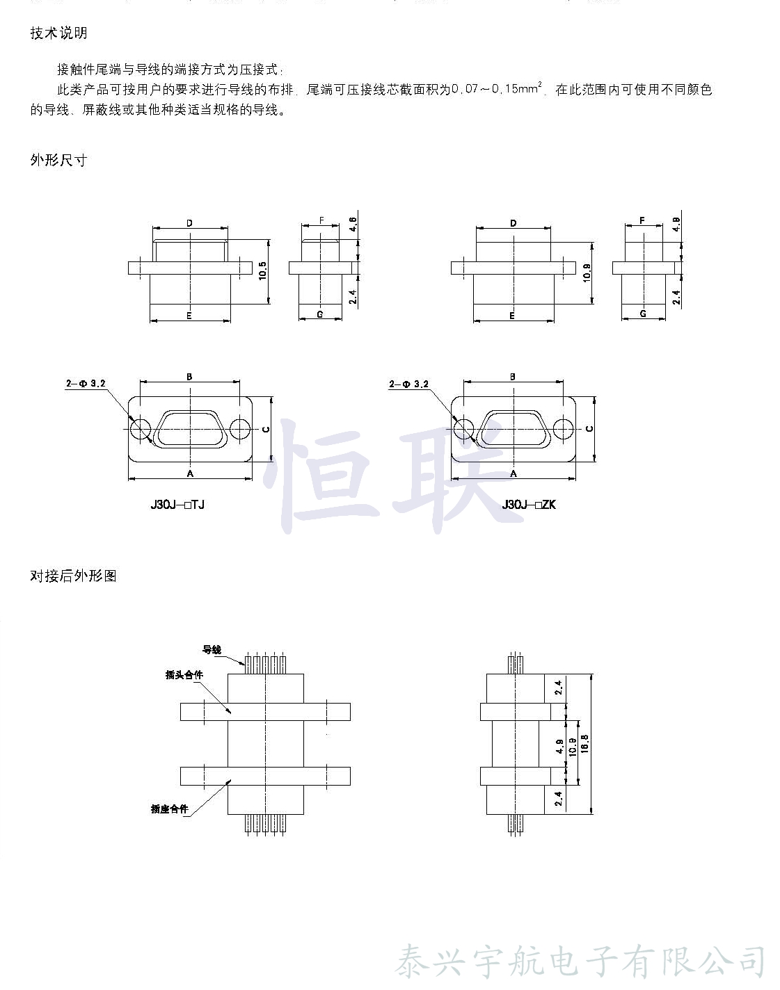 產(chǎn)品特點(diǎn)簡(jiǎn)介 ? 接觸件尾端與導(dǎo)線的端接方式為壓接式; ? 此類產(chǎn)品可按用戶的要求進(jìn)行導(dǎo)線的布排,尾端可壓接線芯截面積為0.07~0.15mm2,在此范 圍內(nèi)可使用不同顏色的導(dǎo)線、屏蔽線或其他種類適當(dāng)規(guī)格的的導(dǎo)線。