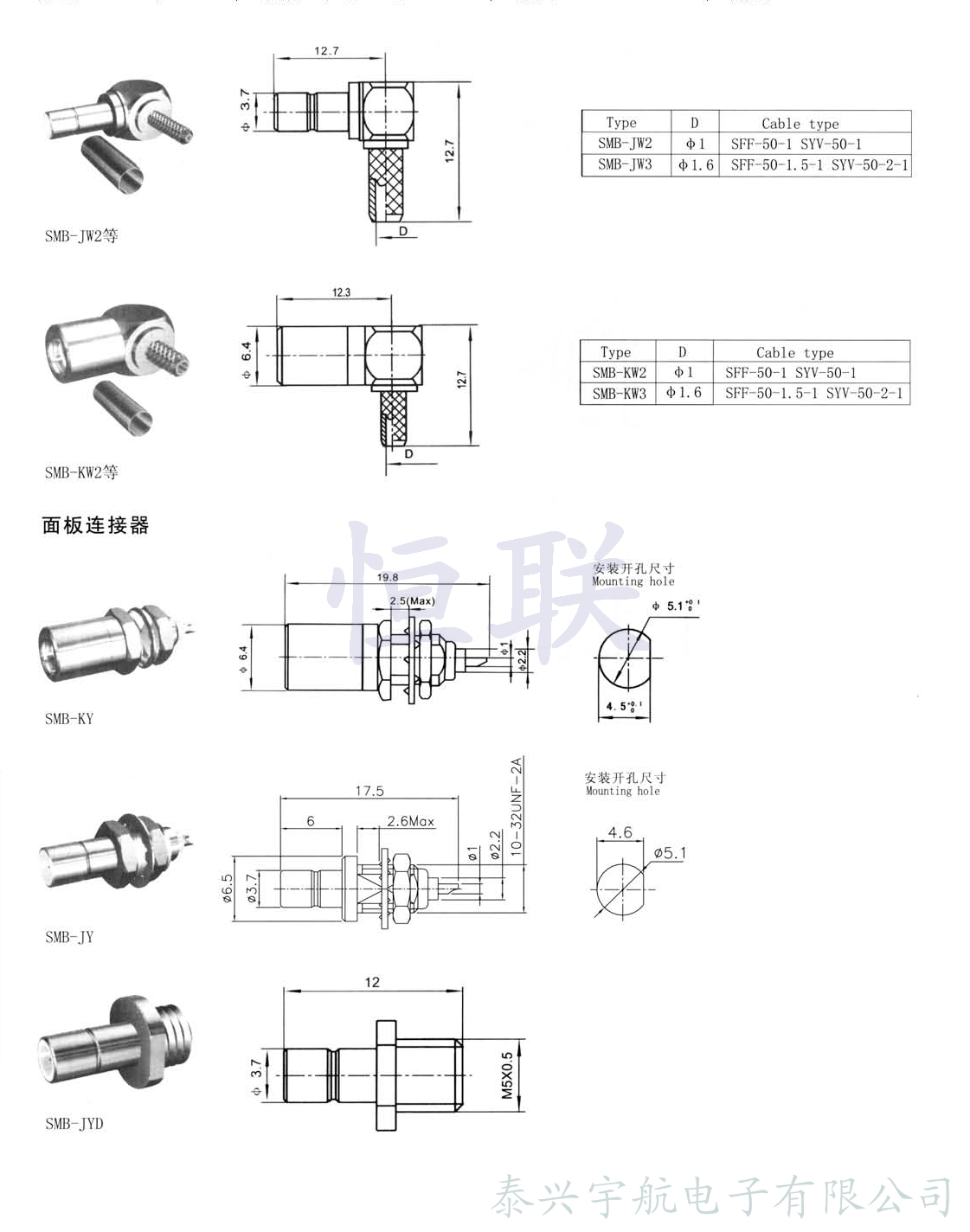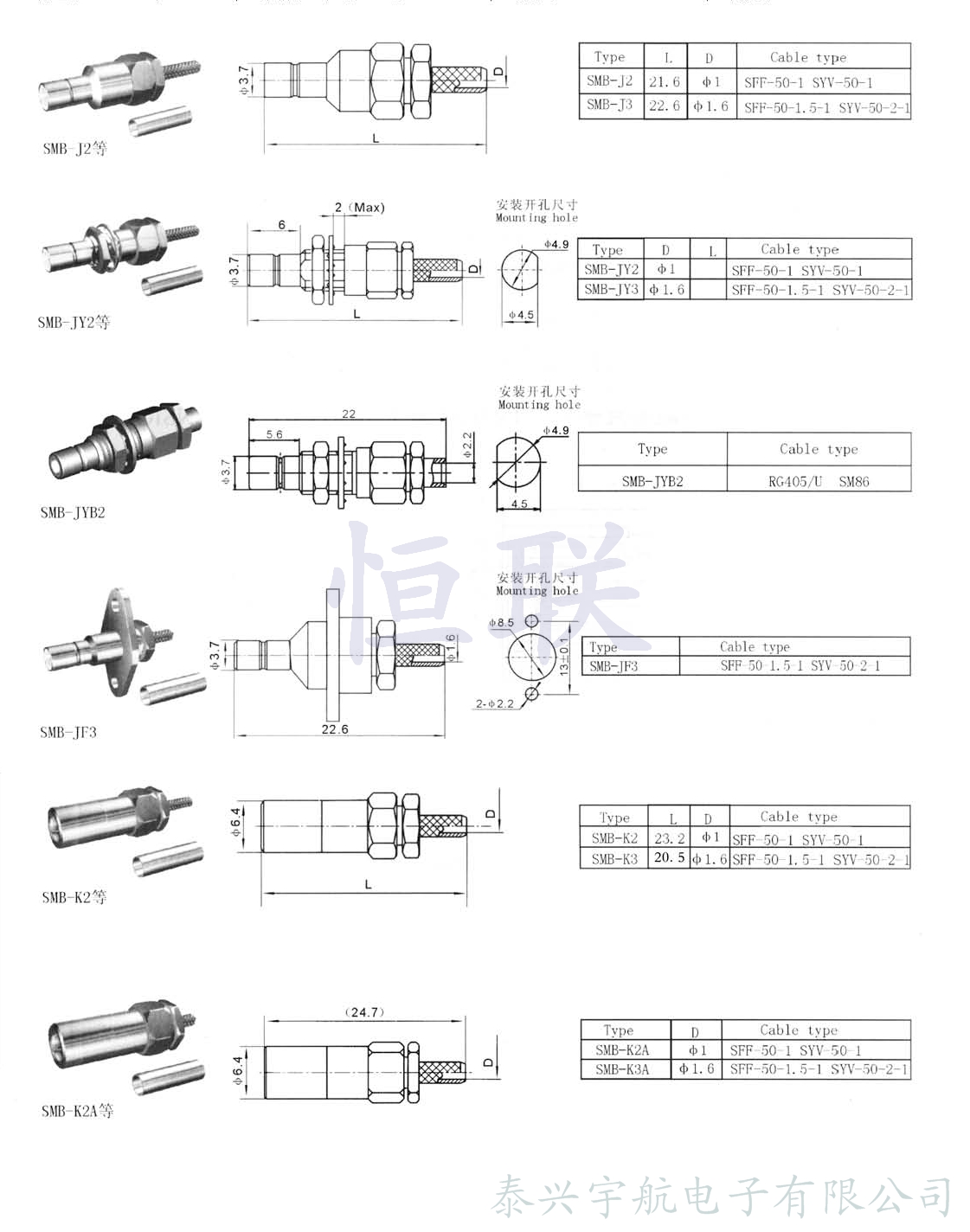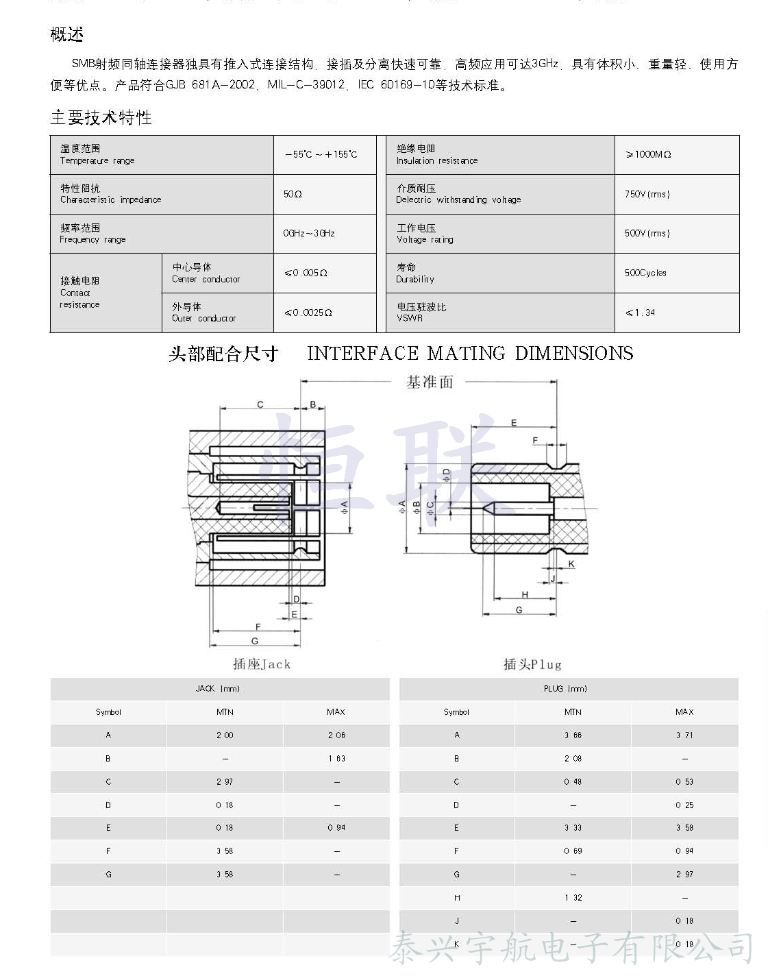 SMB系列射頻同軸連接器是一種具有推入鎖緊機構的連接器,它的界面尺寸符合MIL-C-39012和IE169-10的規(guī)定,因此可以與國內外同類產品互配使用。
