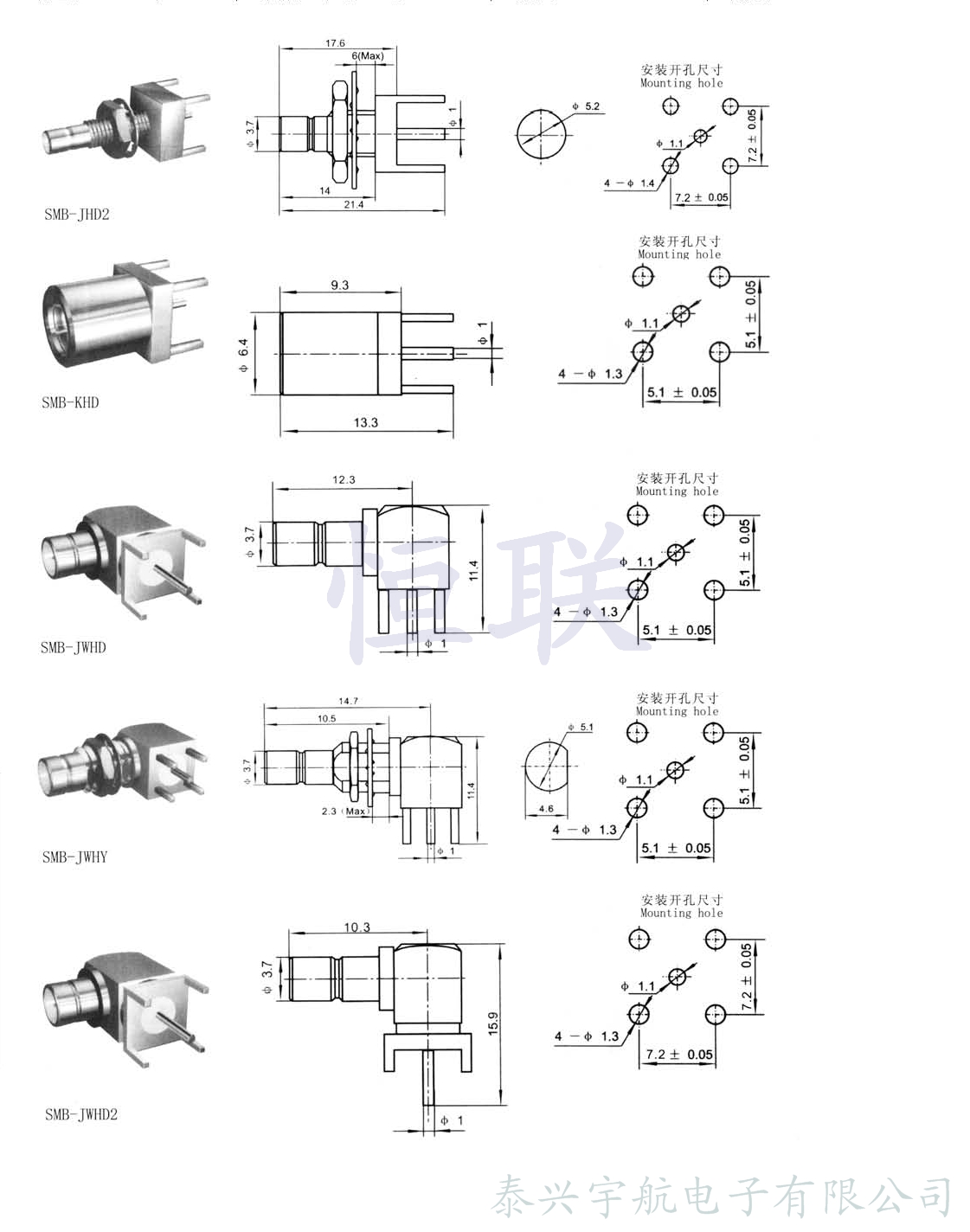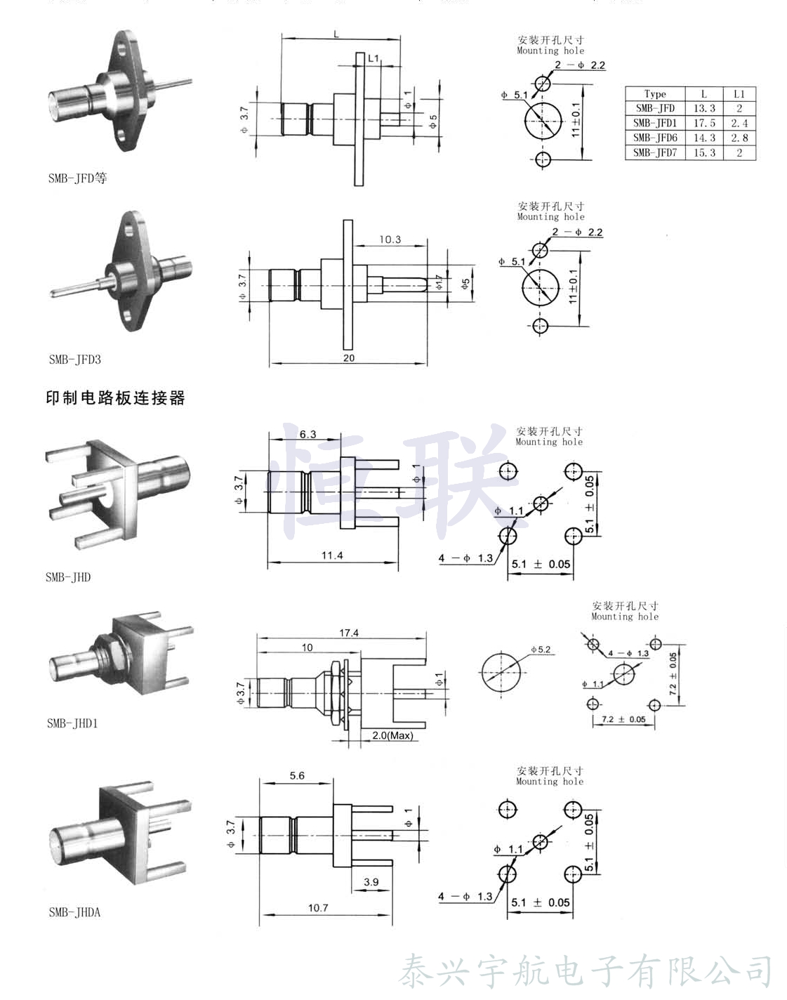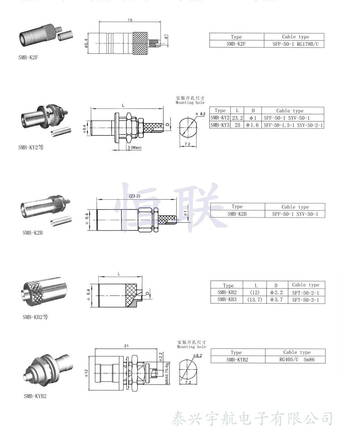 SMB系列射頻同軸連接器可以連接柔軟射頻同軸電纜,也可以與印刷線路板相連,工作頻率可達4GHZ.具有體積小,連接方便等優(yōu)點,被廣泛應用于宇航,導彈,微波通信,無線電電子設備以及各種精密電子儀器設備中。尤其在華為通信設備中使用。