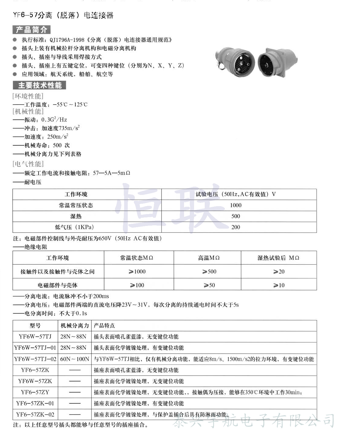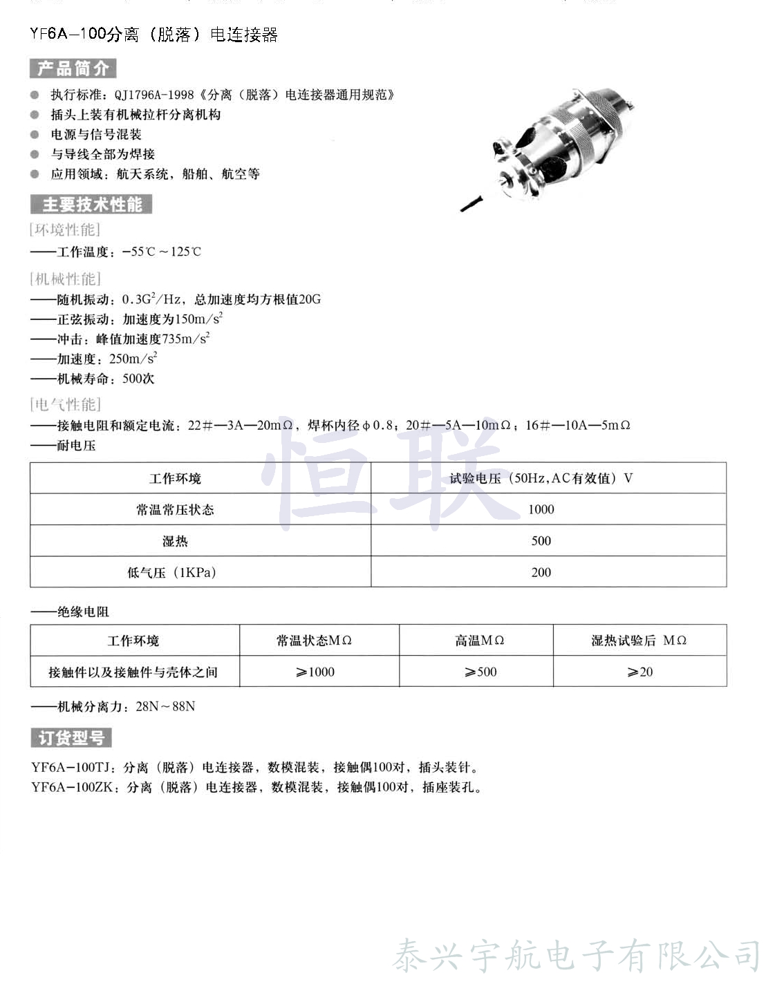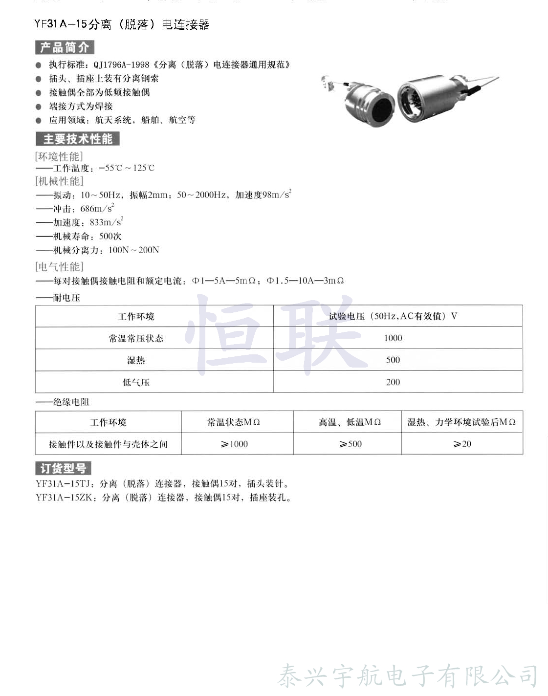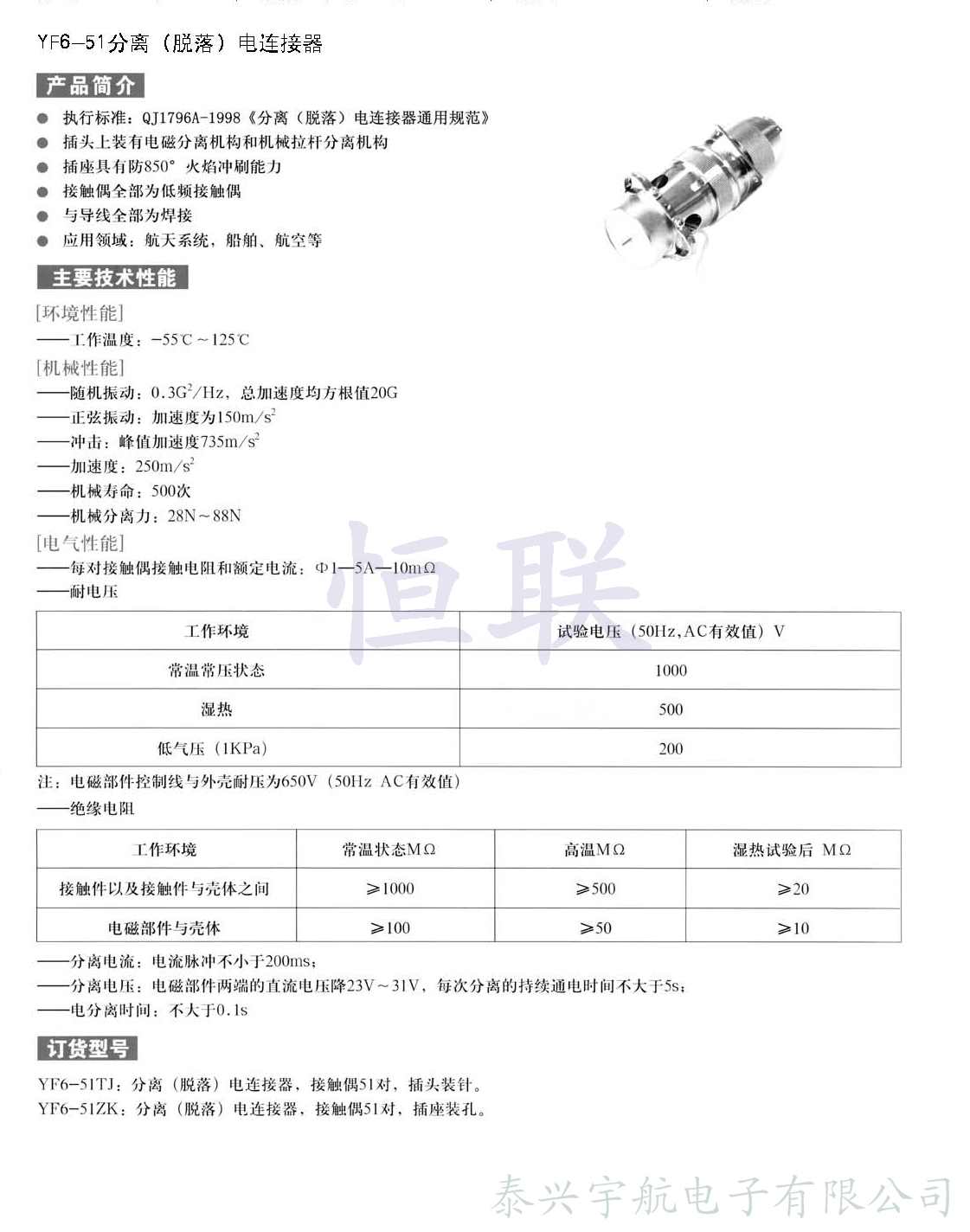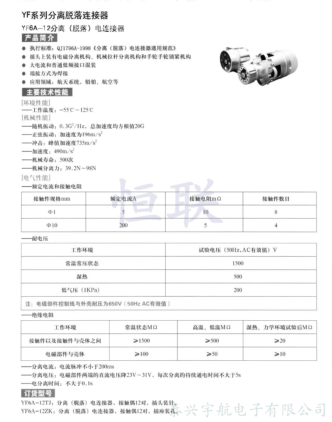 產(chǎn)品型號(hào):YF系列分離脫落連接器