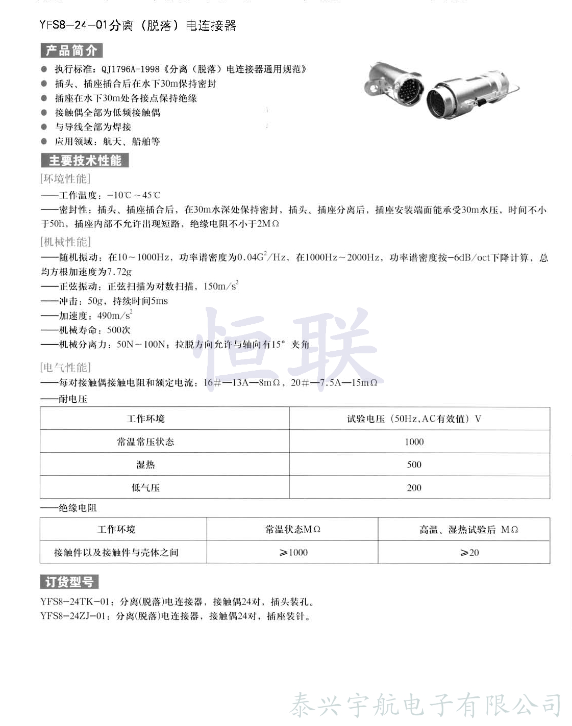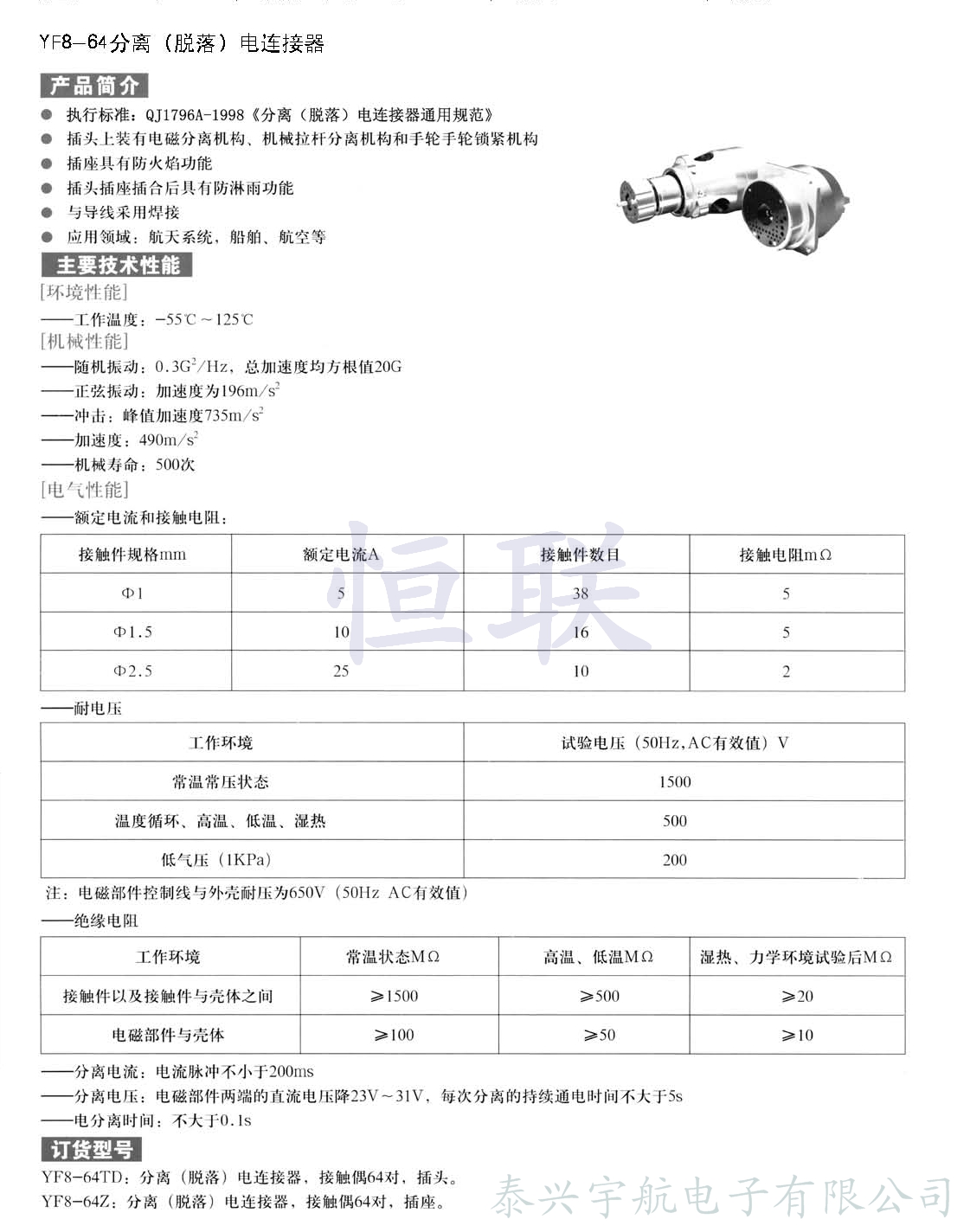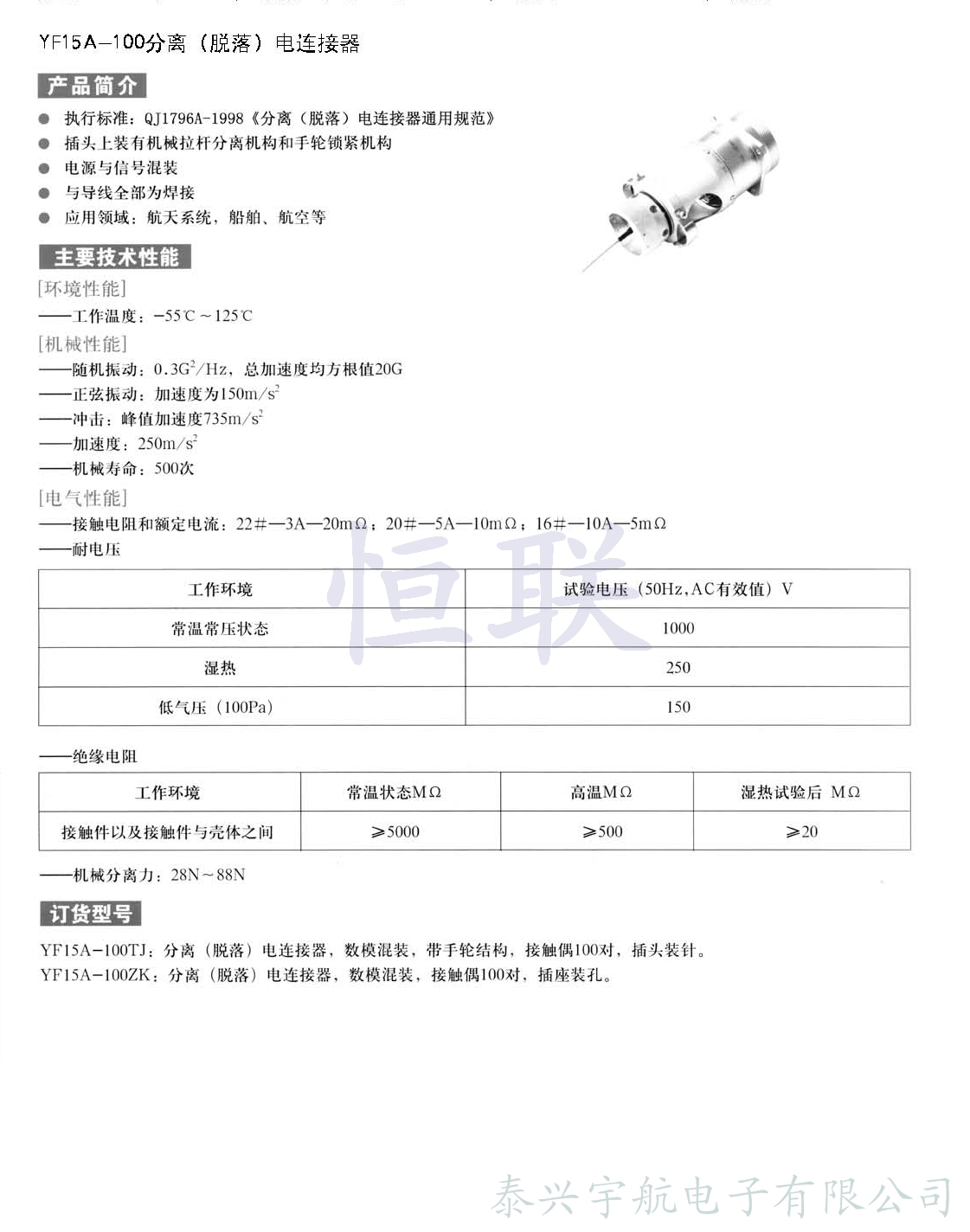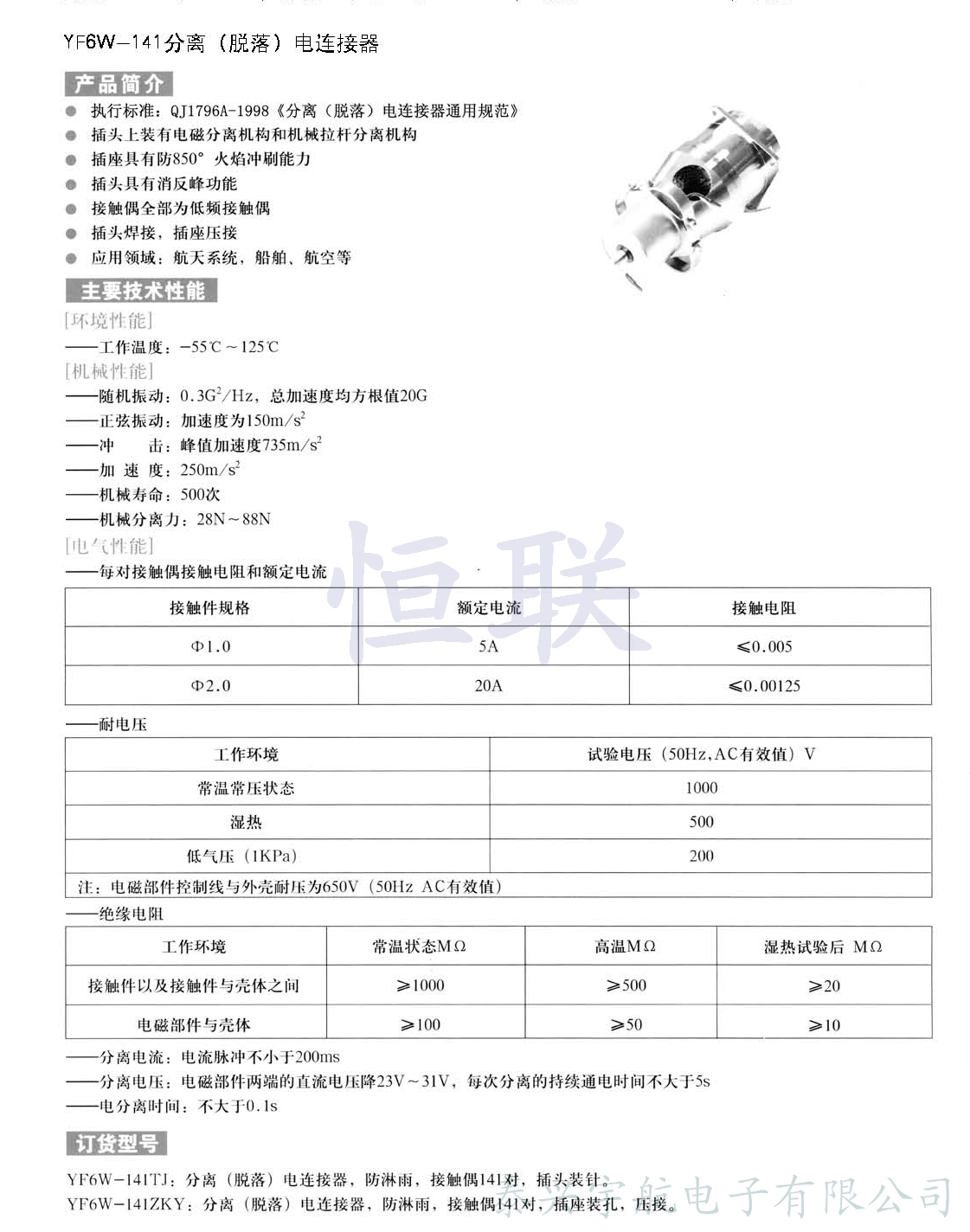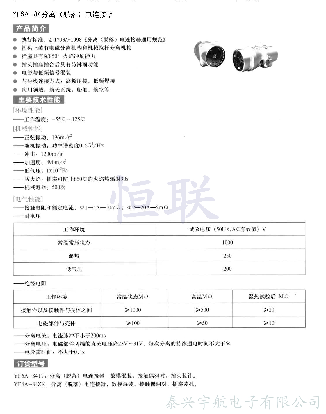 產(chǎn)品型號(hào):YF系列分離脫落連接器