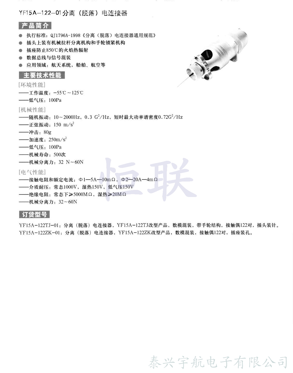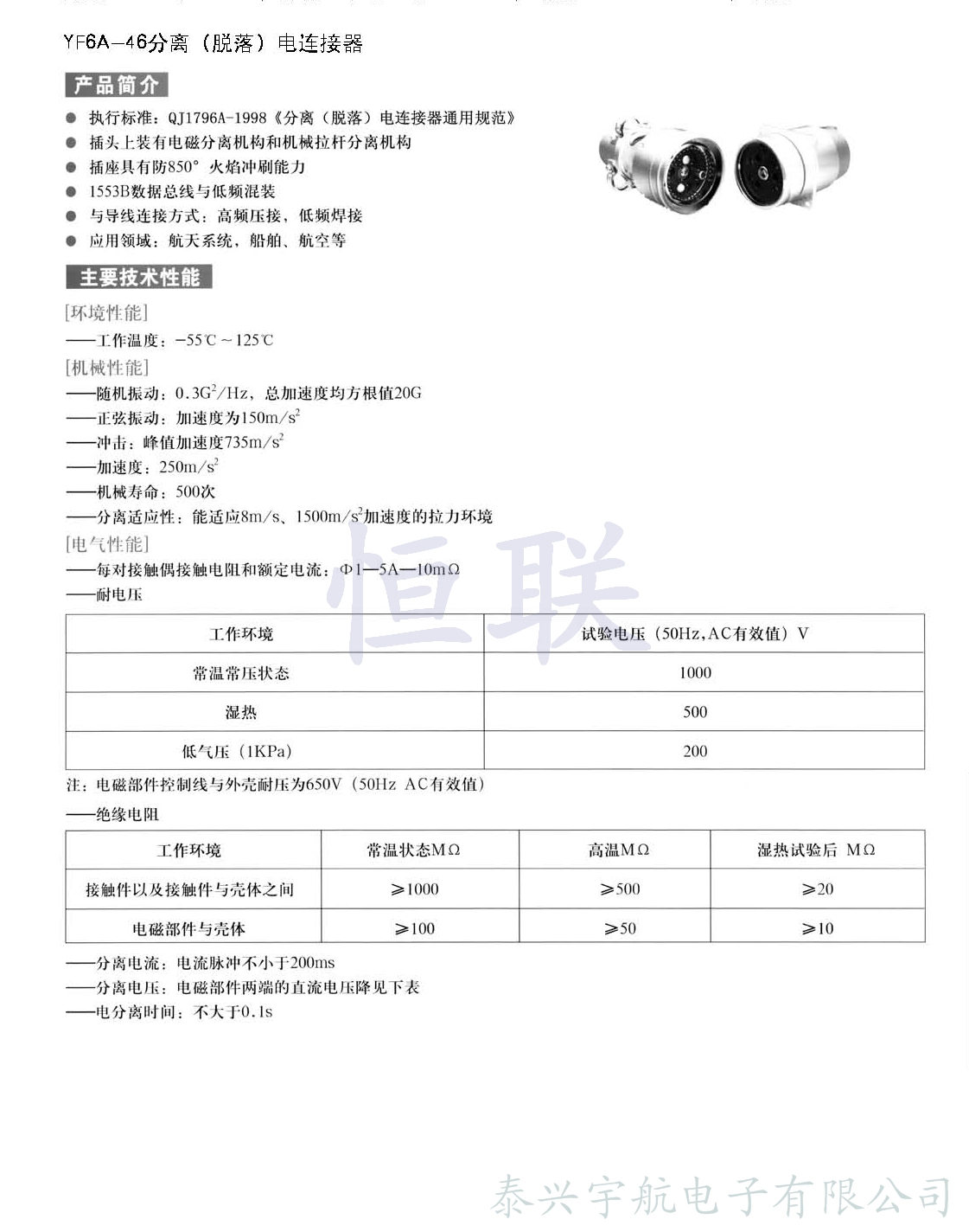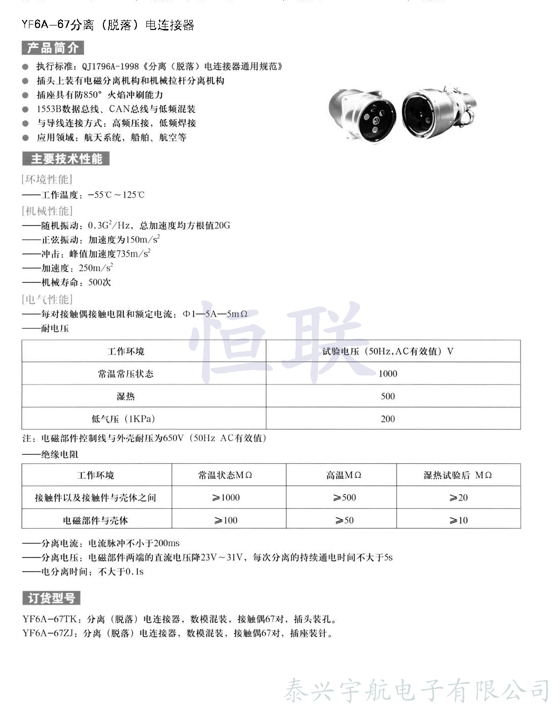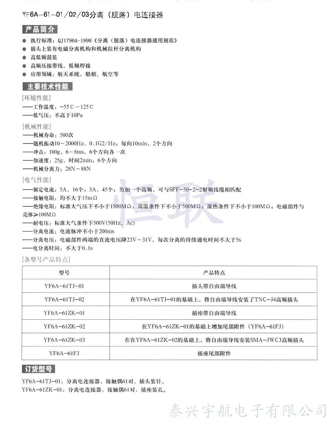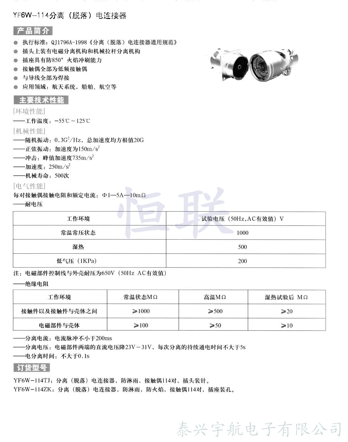 產(chǎn)品型號(hào):YF系列分離脫落連接器