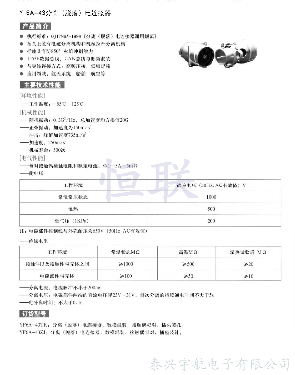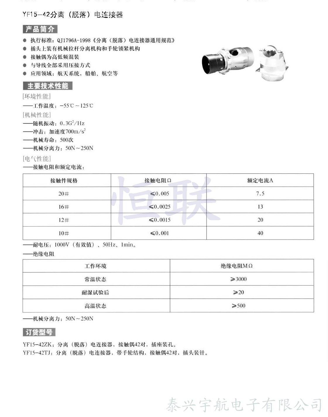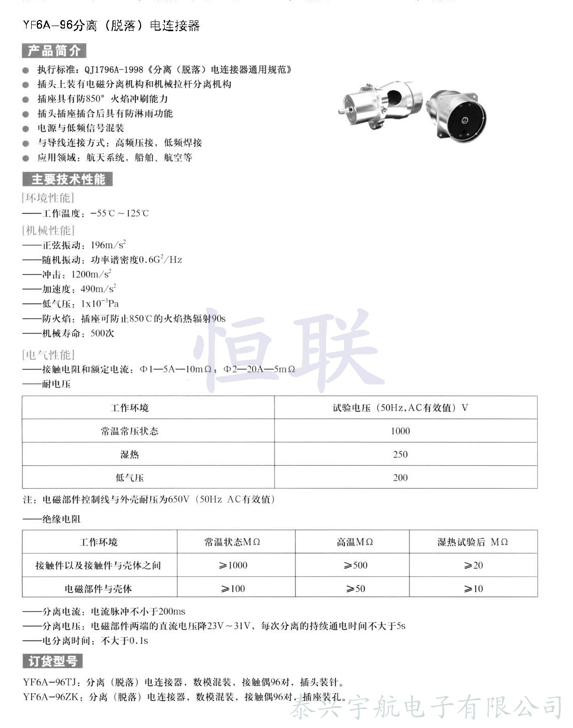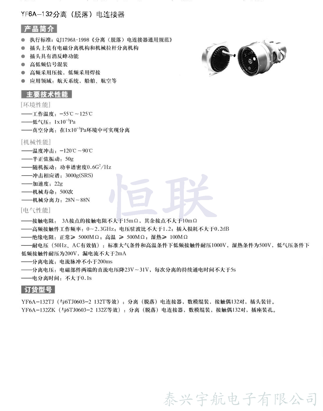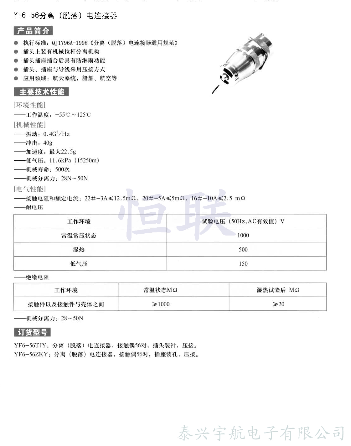 產(chǎn)品型號(hào):YF系列分離脫落連接器