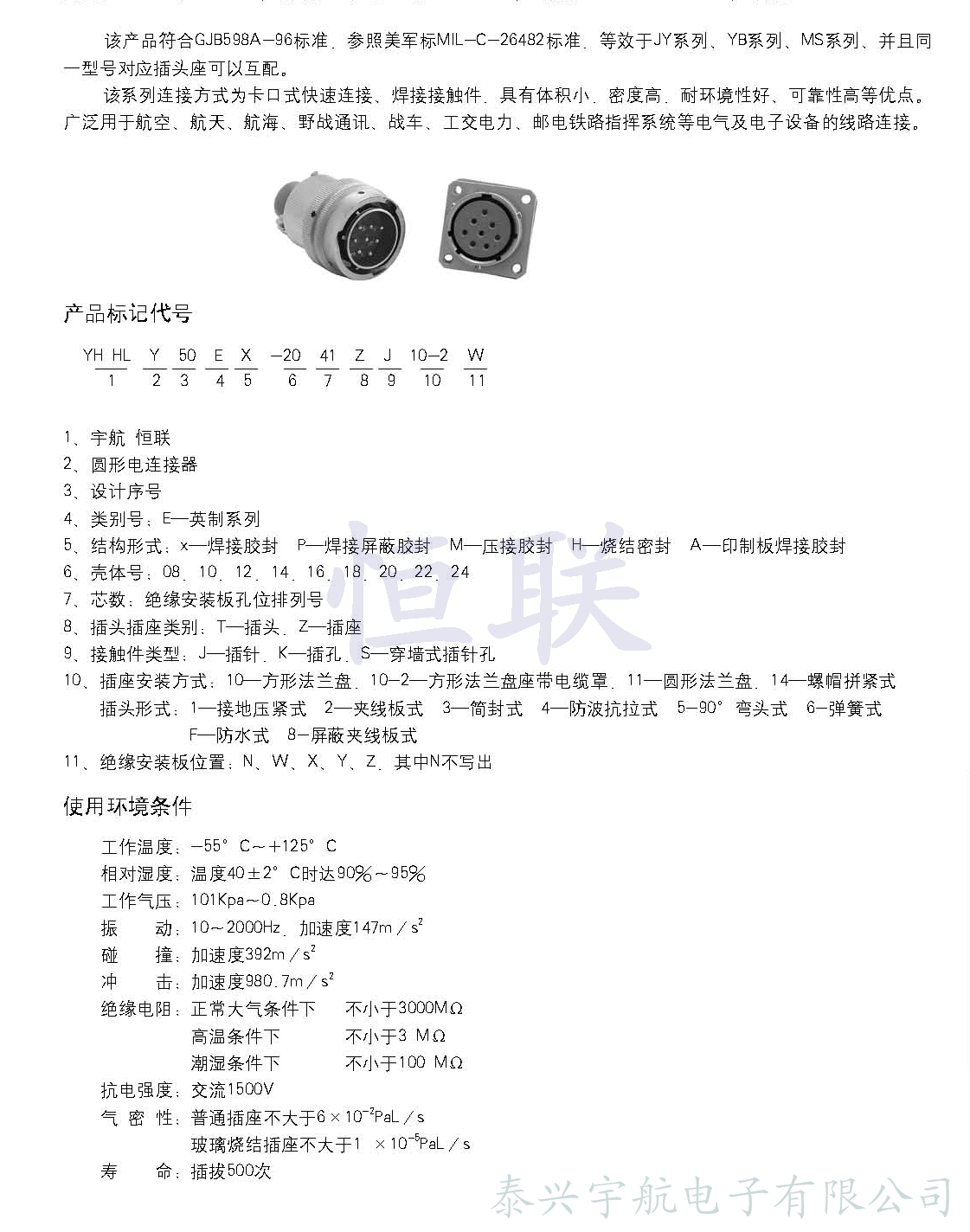 英制電連接器,符合國(guó)軍標(biāo)GJB598A-96 (MIL-C-26482)標(biāo)準(zhǔn),采用內(nèi)卡口鎖緊形式, 插座密封,有多種安裝方式,插頭有多種出線(xiàn) 形式。