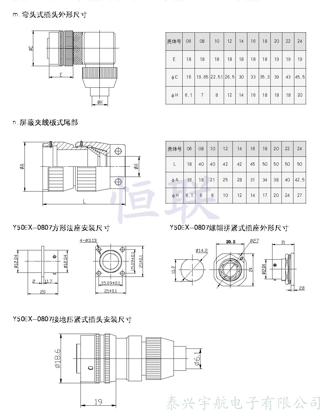 Y50EX系列圓形電連接器