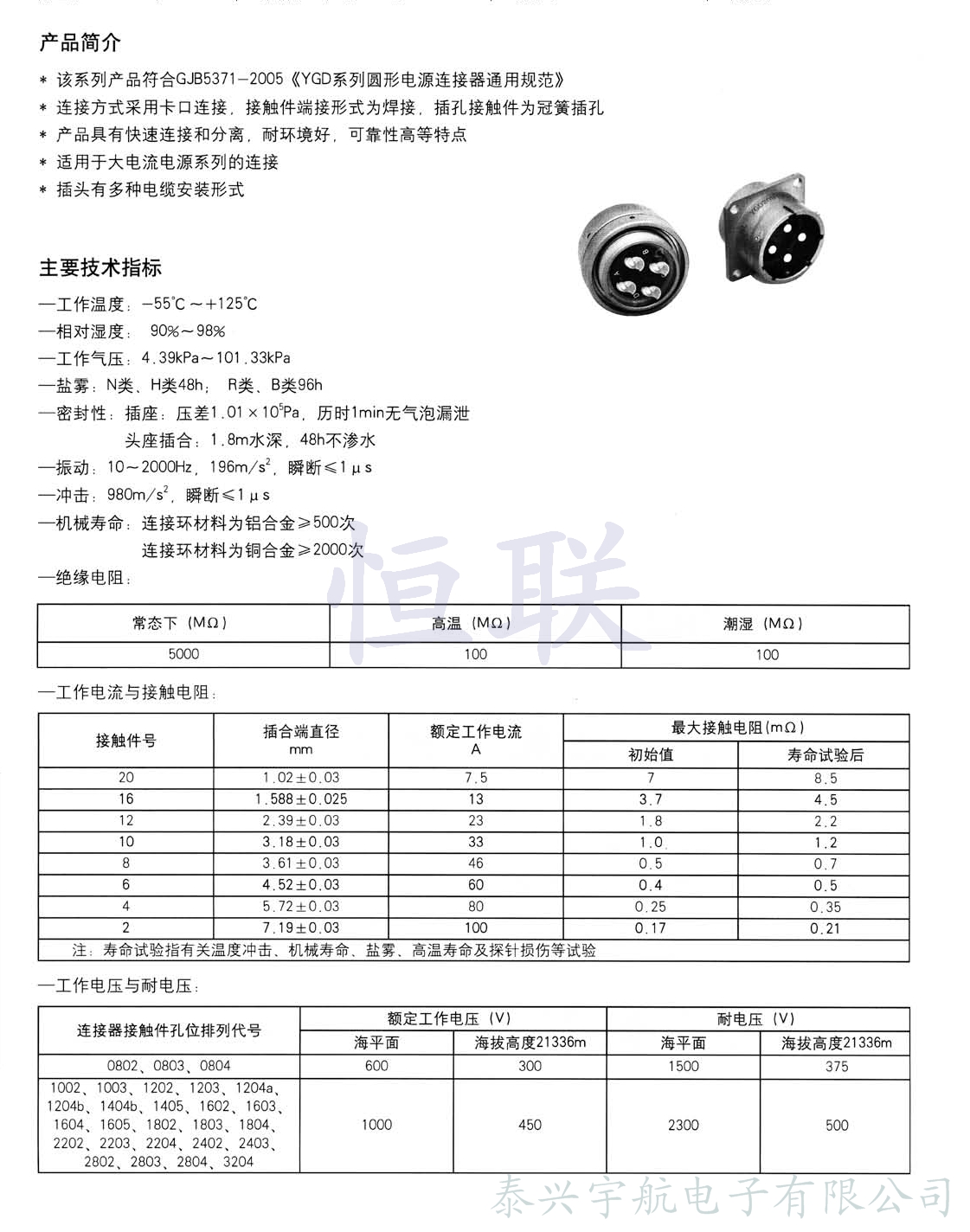 ■符合GJB5371-2005《YGD系列圓形電源連接器通用規(guī)范》。