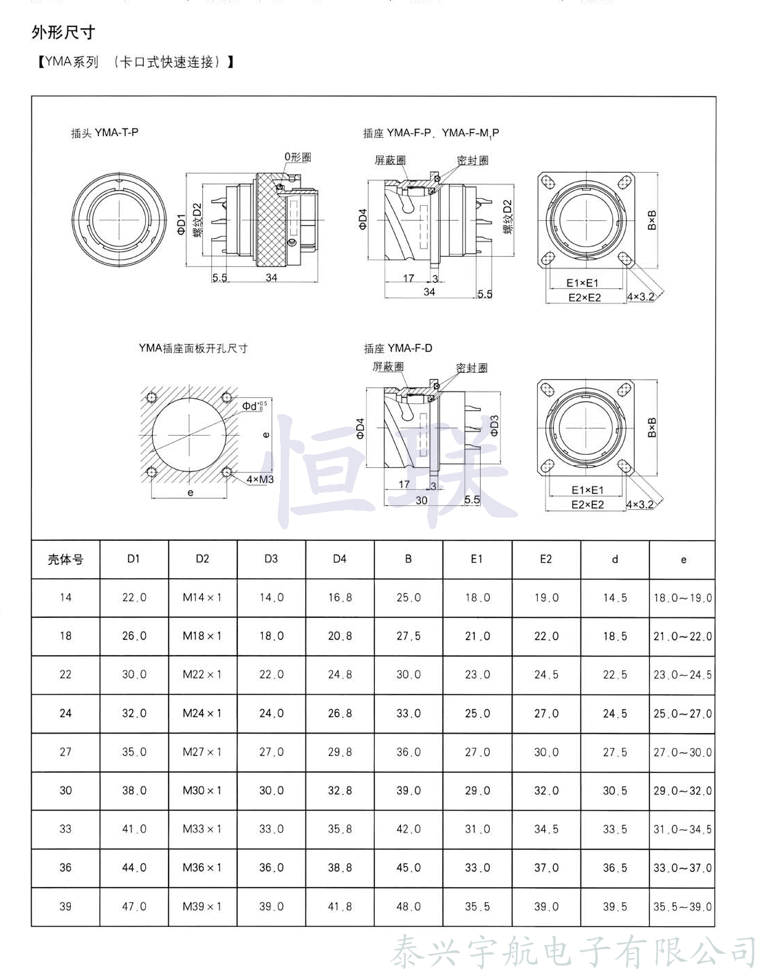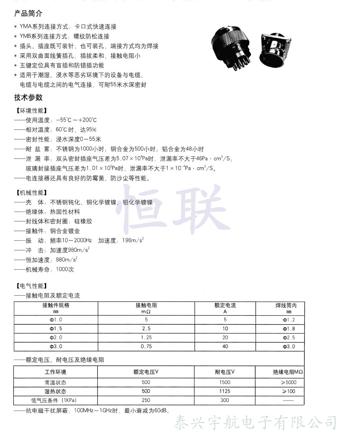 YMA、YMB圓形電連接器